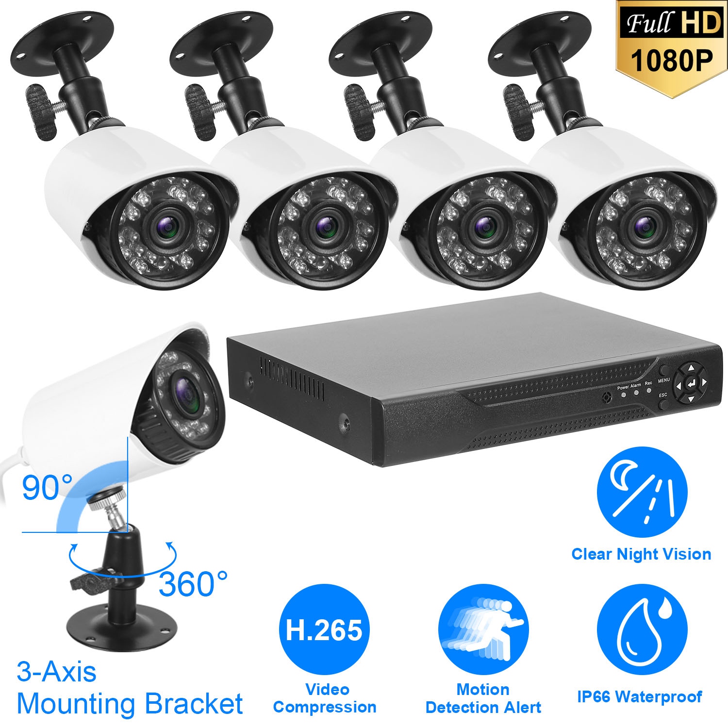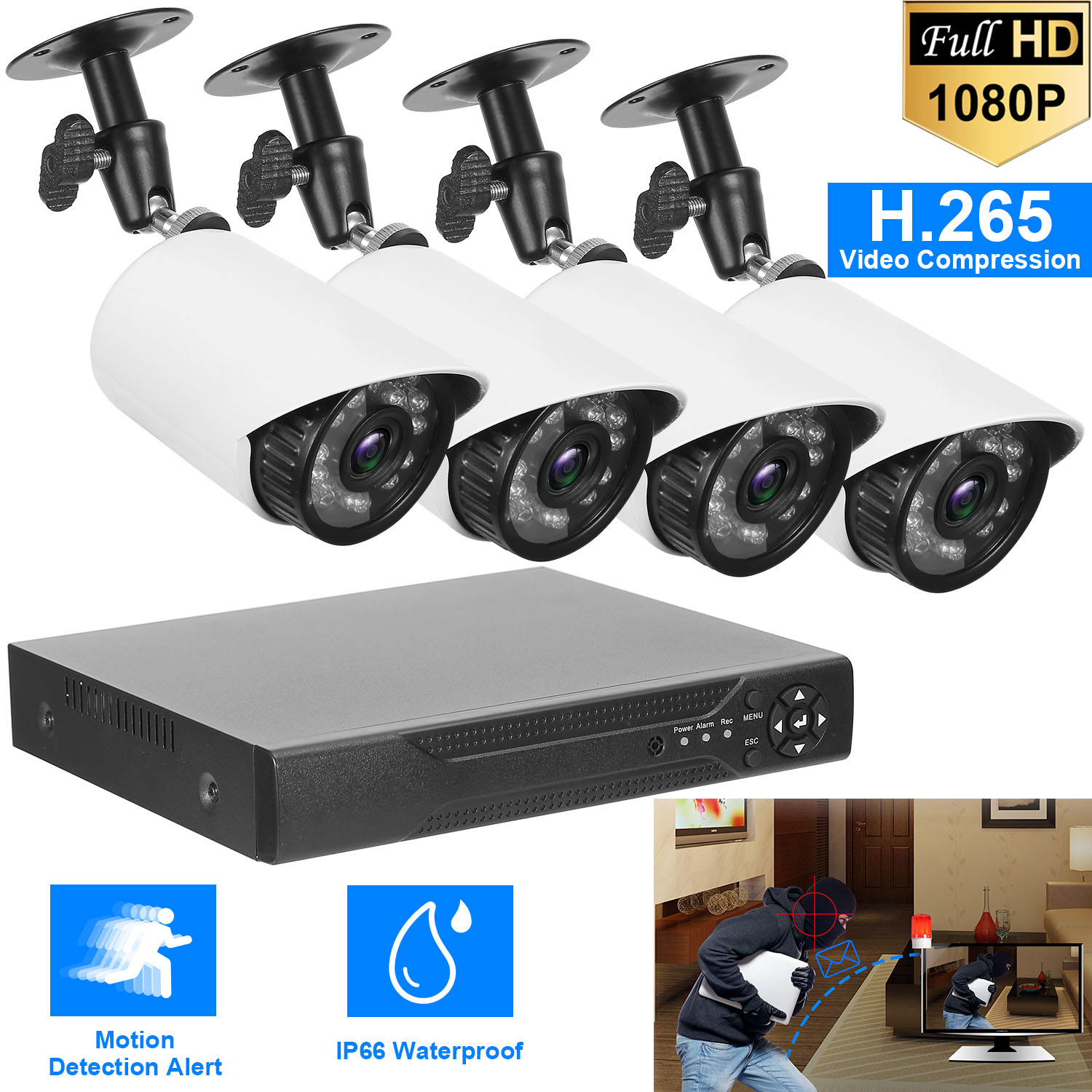 FHD 1080P 4CH Home Security Camera System Night Vision H.265 DVR IP66 Waterproof