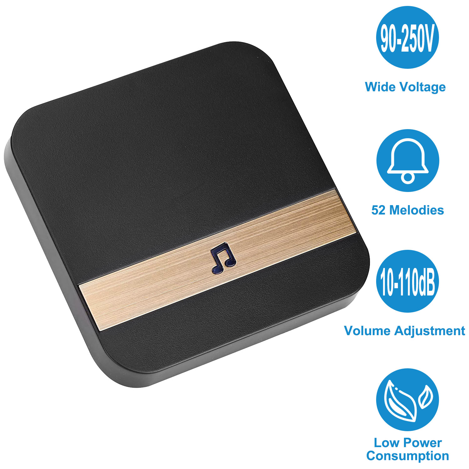 Doorbell chime boasts an ample selection of 52 melodies from traditional doorbell chimes to jingles, certainly offering a chime that suits your taste. Thanks to its smart memory function, it remembers your previous set melody and volume level even after a power outage. The silent volume level doesn’t disturb a sound sleeping baby and the maximum level of 110 dB is hearable by the hearing-impaired or even during a party. Volume and ringtones adjustment meets your customized taste. The classic black is also a great decoration to your home. Easy to setup and can pair with up to 8 WiFi video doorbells.