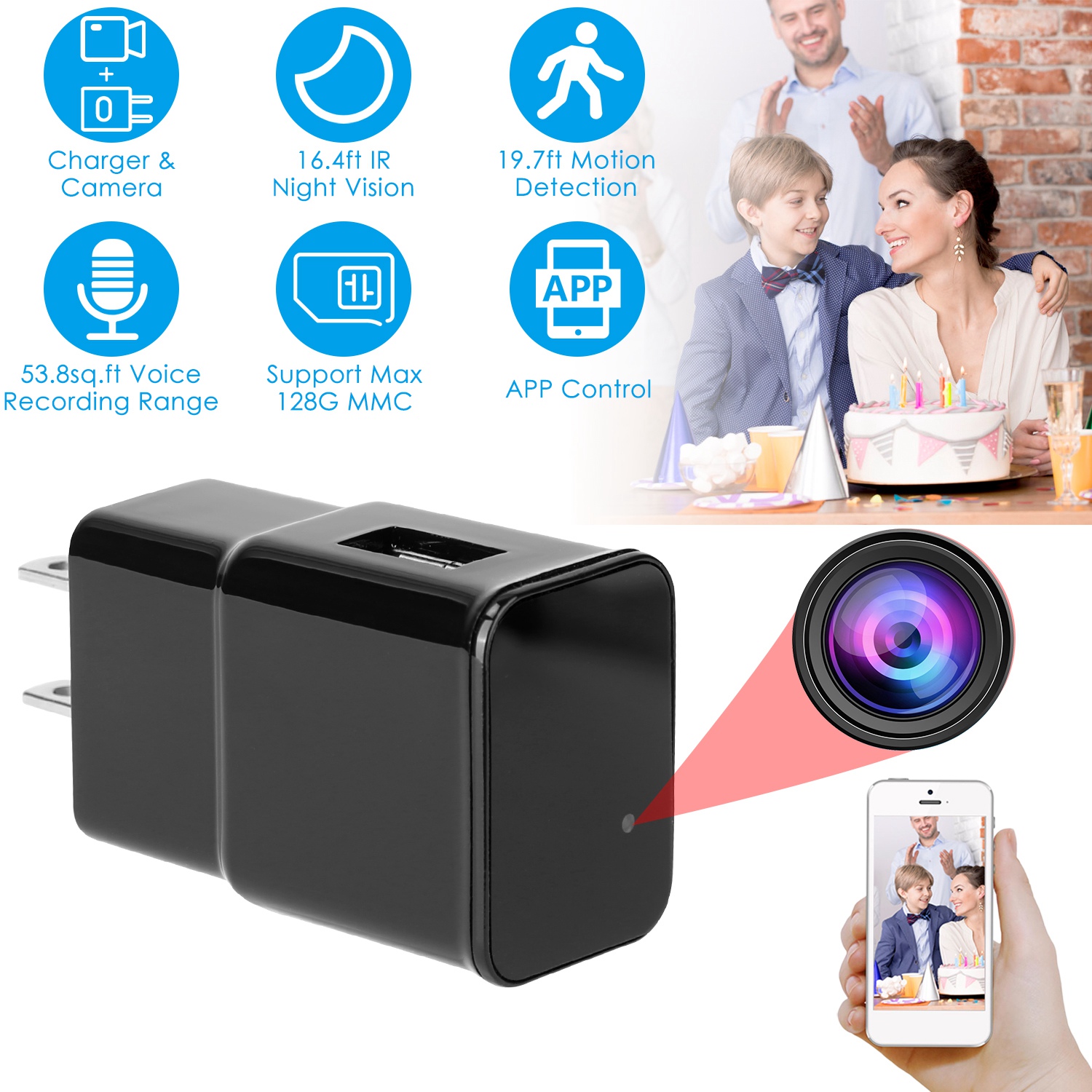 Wireless Camera Charger Adapter Home Security Camera Camcorder with Night Vision Motion Detection 5V/2A USB Output Port MMC Slot