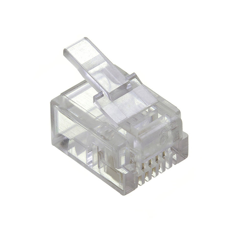 RJ12 Modular Pugs Solid,?50 Pack Modular Phone Plugs/Connectors Used to make custom phone cords or replace a broken phone cord plug. Here?s an in-depth look at the specifications of this RJ12?Modular Plugs Pack Plug Type: RJ12 Gold-plated contacts Conductors:?6 Compatibility: Solid Cable 50 per pack Transparent plastic Used for phone or voice applications in home or office cable systems Color: Clear