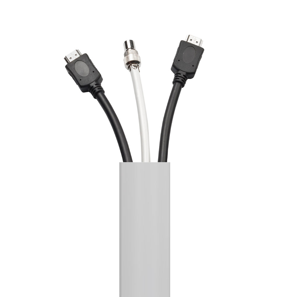 Low profile and paintable surface allow this surface mount raceway to be used on installations where minimum presence is required. Just rollout the length you need, cut with ordinary scissors, and fold into a rigid channel shape. Then remove the tape backing and apply to clean dry surface. Load wires or cable and snap shut. 4 sizes. Knowing that up to 100 feet of raceway packed in a box the size of a pizza box is always on hand is comforting also.