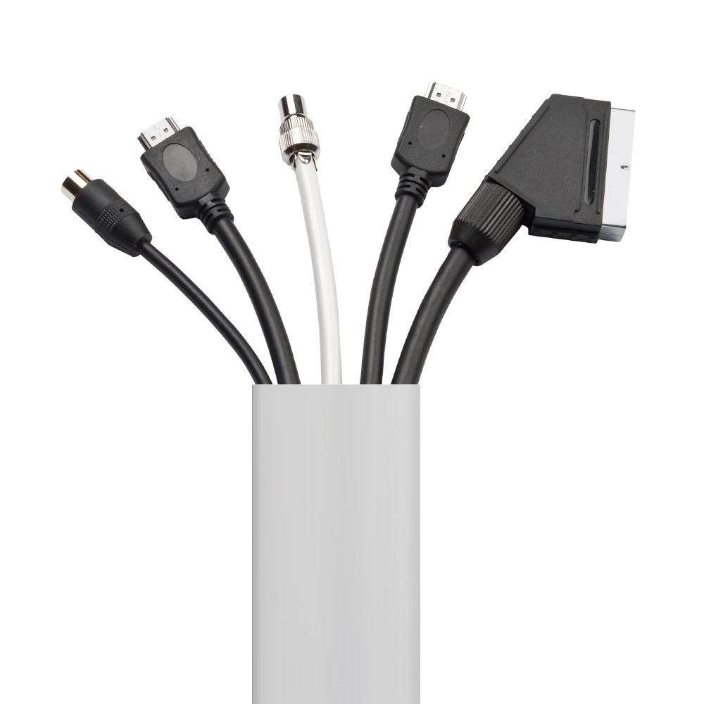 Low profile and paintable surface allow this surface mount raceway to be used on installations where minimum presence is required. Just rollout the length you need, cut with ordinary scissors, and fold into a rigid channel shape. Then remove the tape backing and apply to clean dry surface. Load wires or cable and snap shut. 4 sizes. Knowing that up to 100 feet of raceway packed in a box the size of a pizza box is always on hand is comforting also.