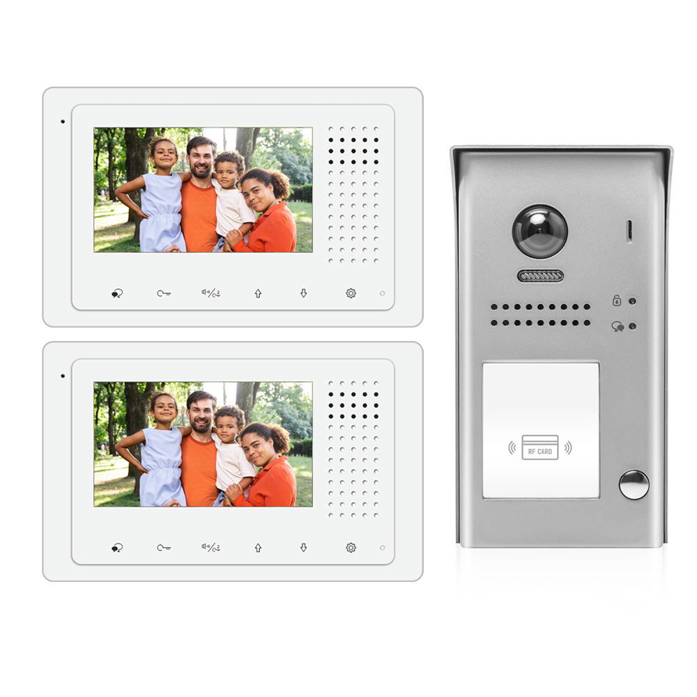 One Apartment 2 Wire Video Intercom Doorbell System with Two Monitors