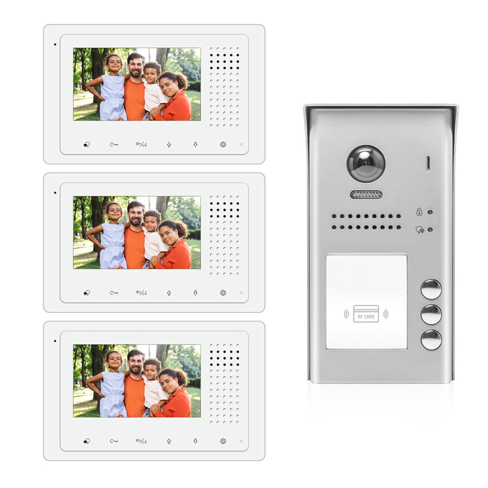 Three Apartment 2 Wire Video Intercom Doorbell System