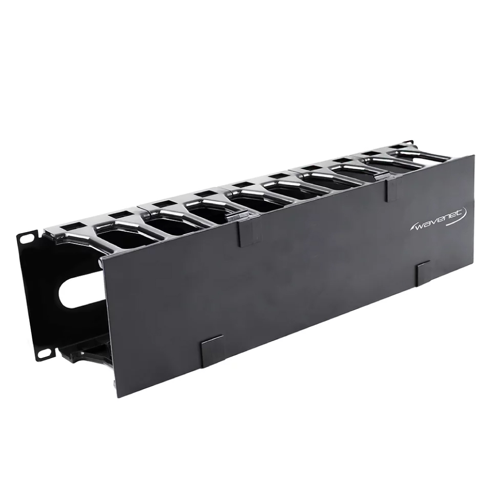Cable management panel manages efficiently high densities structured cabling in data centers and telecommunication rooms, which allows the maximum amount of cables to be organized in a minimum amount of space. 3U cable management panel can increase the speed of installation or any configuration change and reduce cost for less energy usage.
