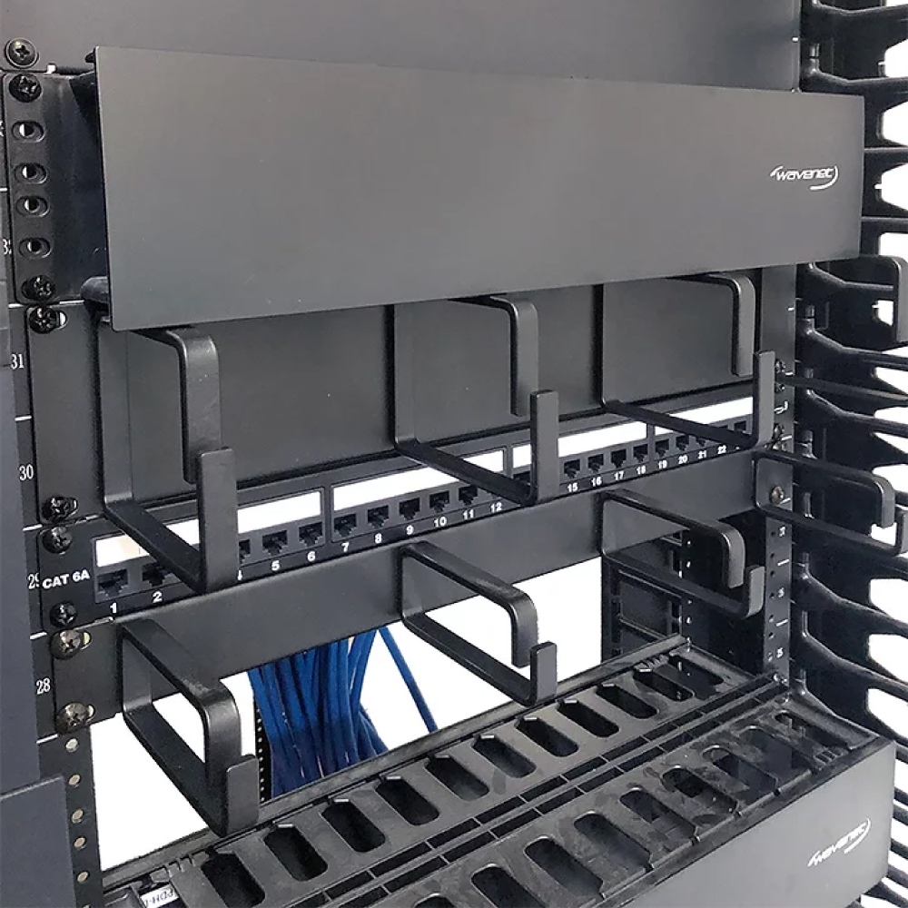 Our 1U rack cable management panel is perfect for efficiently high densities structured cabling in data centers or telecommunication rooms, which allows the maximum amount of cables to be organized in a minimum amount of space. This D-Ring cable management panel can increase the speed of installation or any configuration change and reduce cost for less energy usage.