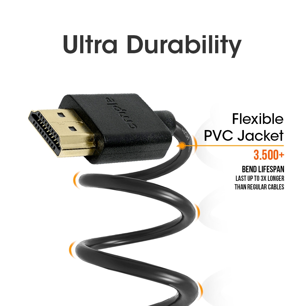 The Cmple Ultra High-Speed HDMI Cable can help you obtain the maximum performance from your latest high-definition electronic devices. Use this cable to connect your HDTV to your cable box, satellite dish, Blu-Ray player, and more, and experience quality audio and video (up to 1080p) from your home.