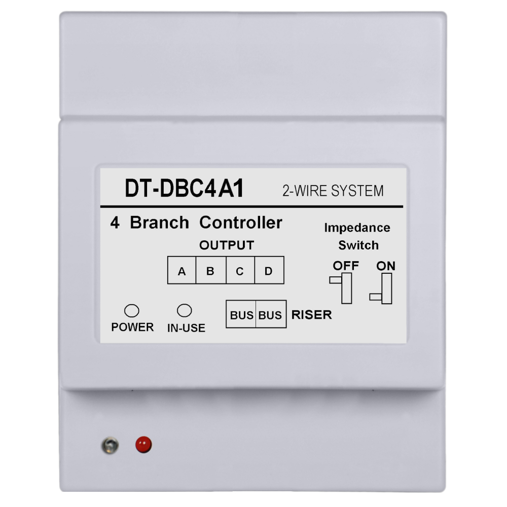 Output Branch Controller for 2 Wire Video Intercom System – DT-DBC4A1, 4-Way Distributor Module for up to 4 Door Panels or Monitors, DIN Rail Mount Output Branch Controller for 2 Wire Video Intercom System – DT-DBC4A1, 4-Way Distributor Module for up to 4 Door Panels or Monitors, DIN Rail Mount Output Branch Controller for 2 Wire Video Intercom System – DT-DBC4A1, 4-Way Distributor Module for up to 4 Door Panels or Monitors, DIN Rail Mount
