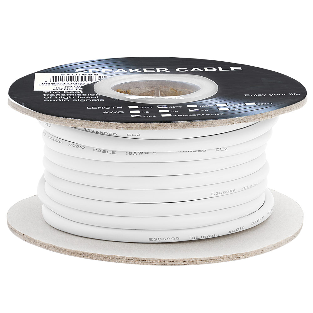 Speaker Wire 50ft 16 Gauge 2C White | In-Wall | CL2 Rated Speaker Cable Speaker Wire 50ft 16 Gauge 2C White | In-Wall | CL2 Rated Speaker Cable Speaker Wire 50ft 16 Gauge 2C White | In-Wall | CL2 Rated Speaker Cable
