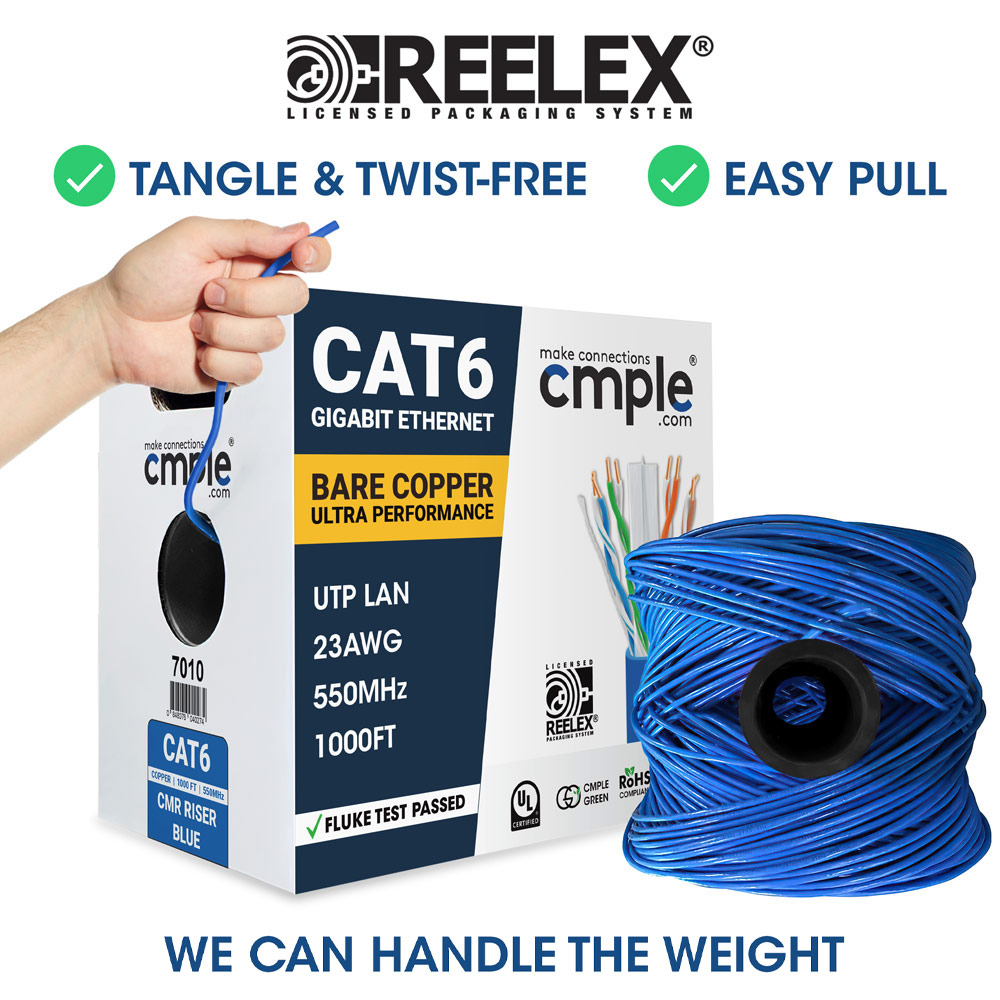 Cat 6 Riser Ethernet Cable Blue | UL, CMR, 23AWG | Bare Copper 1000ft Cat 6 Riser Ethernet Cable Blue | UL, CMR, 23AWG | Bare Copper 1000ft Cat 6 Riser Ethernet Cable Blue | UL, CMR, 23AWG | Bare Copper 1000ft