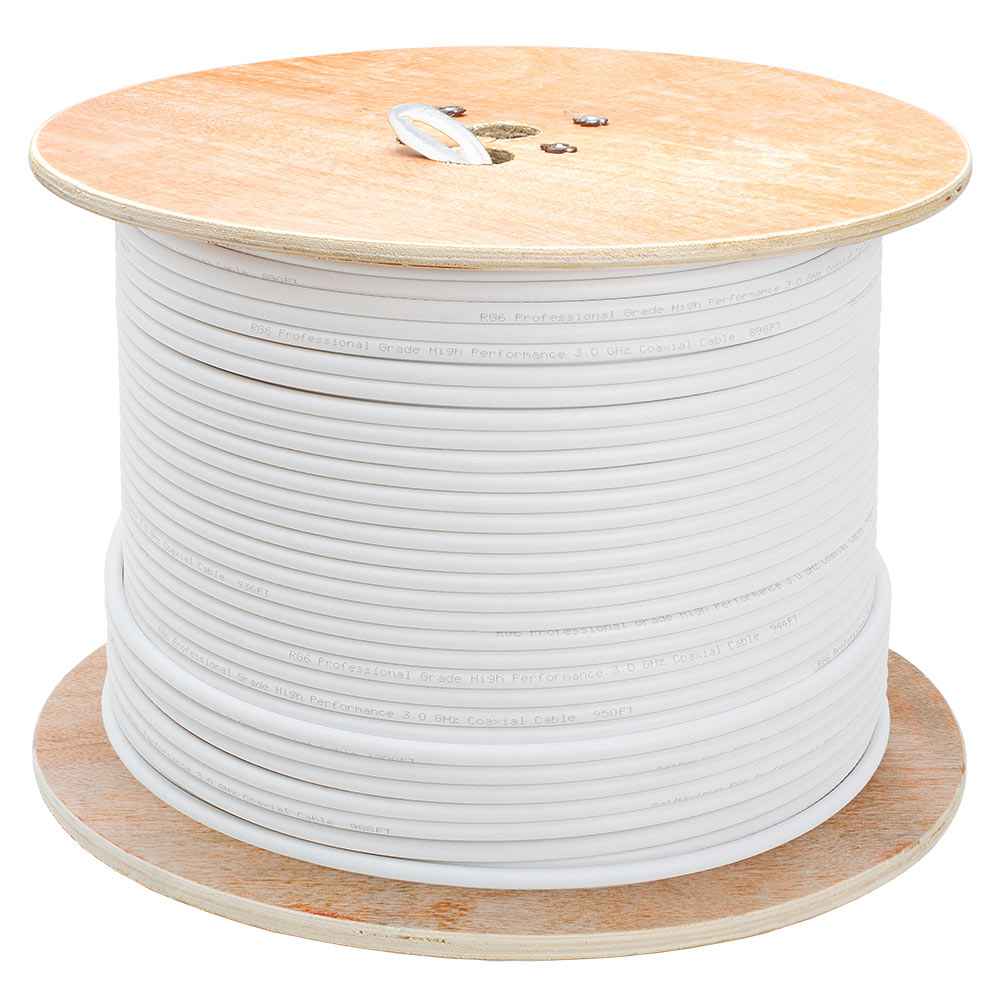RG6 Quad Shield Wooden Spool - 1000 Feet, Black