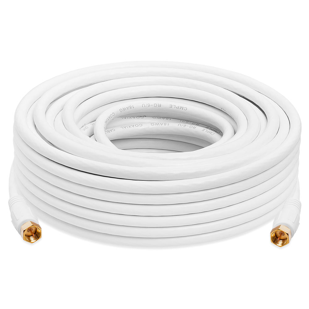 Our RG6 Coaxial Cable with F-connectors is compatible with HDTV, VCRs, cable modems, satellite receivers, antennas, and much more.