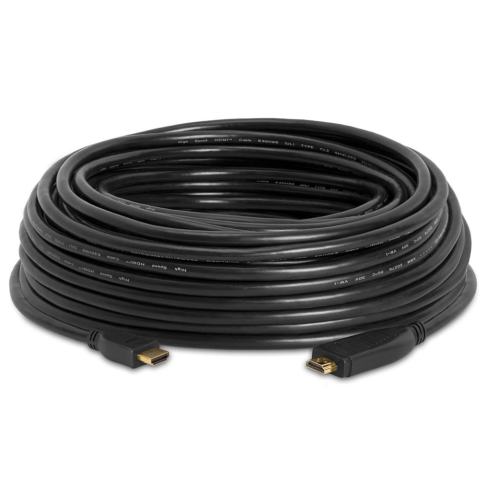 This Cmple High Speed HDMI cables with Ethernet are designed with built-in signal equalizer for applications that require high-performance transmission of HDMI digital video and multi-channel audio signals. These cables have active amplification built-in to prevent impedance mismatch, caused by the cable attenuation, dielectric losses and compensation for skin effect over long distances. The built-in booster does not require an external power, since it is using the 5-volt from pin-18 on the HDMI cable extracting the power from the display. These cables are fully CL2 certified which surpasses any in-wall code requirement for residential or commercial installations.