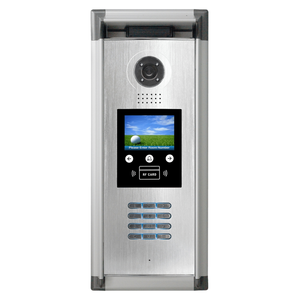 This door station has a built-in proximity reader and keypad so that residents can open the door lock either with an RFID fob/card or password via keypad from the outside. It has 3.5 inch TFT screen with scrolling information for first-time visitors telling them how to contact an apartment. The doorbell voice function tells visitors if the door is open, or a resident is unavailable- very useful for visually impaired people. This door station is digital meaning the number of apartments can be increased or decreased if necessary. Scrolling info on the screen can be amended via an SD card. The front door intercom system offers convenience, as well as an added layer of security.
